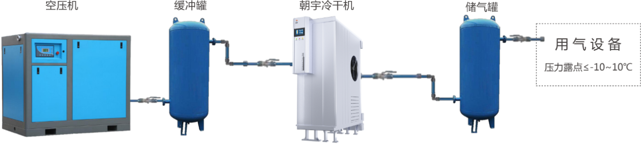 貝騰方案一:朝宇冷干機(jī),環(huán)境溫度≥0℃,壓力露點(diǎn)-10~+10℃,無(wú)冷凝水: