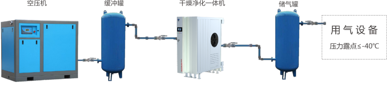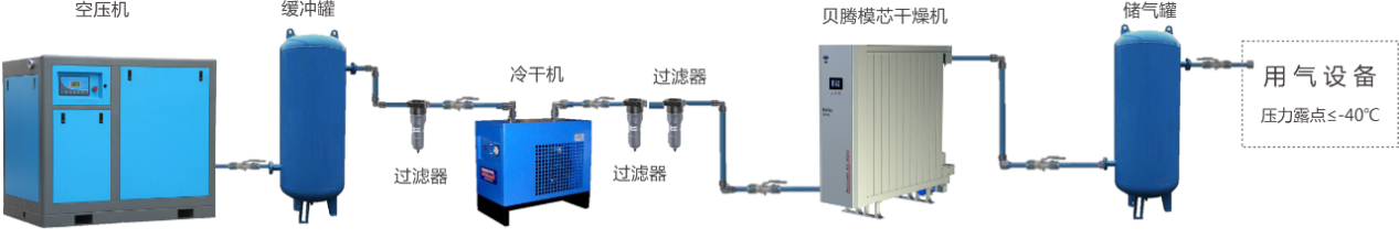 貝騰方案二:干燥凈化一體機(jī),環(huán)境溫度≥-40℃,壓力露點(diǎn)≤-40℃,無(wú)冷凝水: