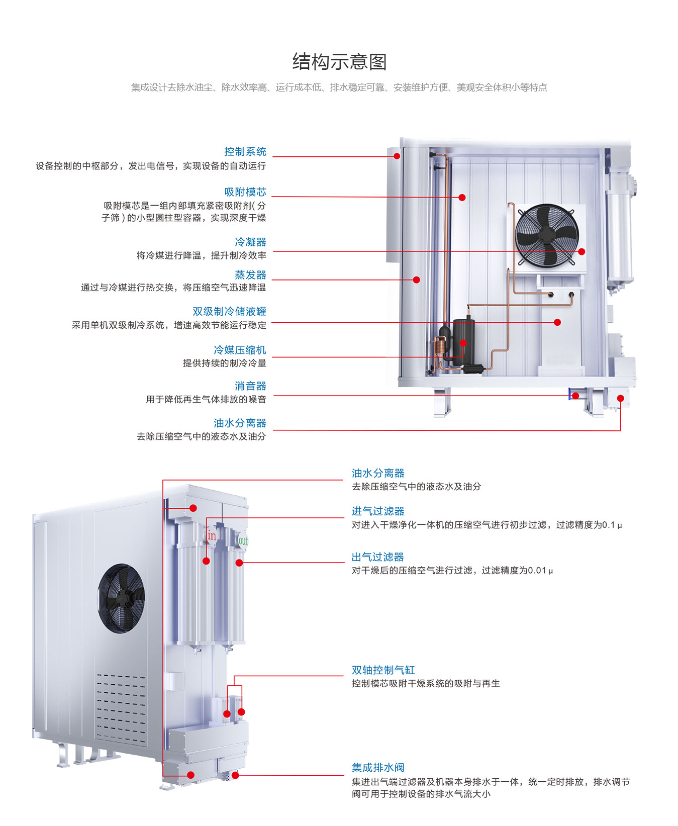 集成整個壓縮空氣凈化系統(tǒng),打破原有壓縮空氣的凈化模式,開啟壓縮空氣凈化系統(tǒng)的集成新時代,開創(chuàng)性的冷干過濾一體設(shè)計,性能強(qiáng)大、操作簡單、運(yùn)行穩(wěn)定,滿足各種壓縮空氣凈化需求。