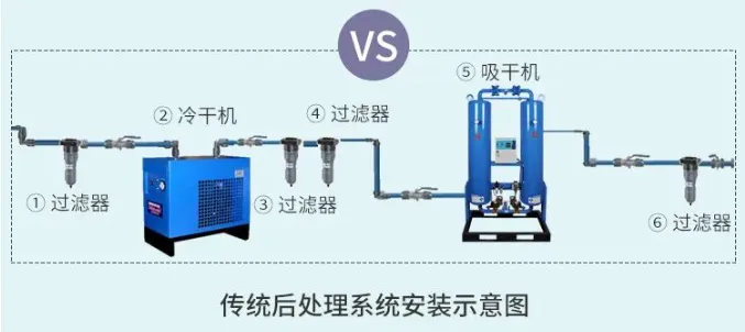 4、主管道安裝完畢后、與干燥機(jī)連通之前,必須先將主管道吹掃干凈,避免影響設(shè)備性能效果和使用壽命。