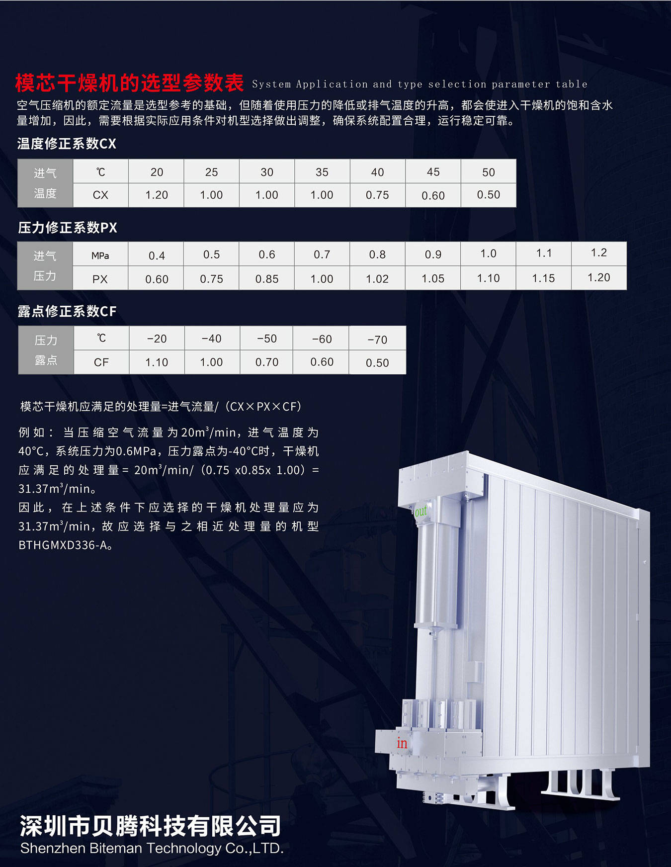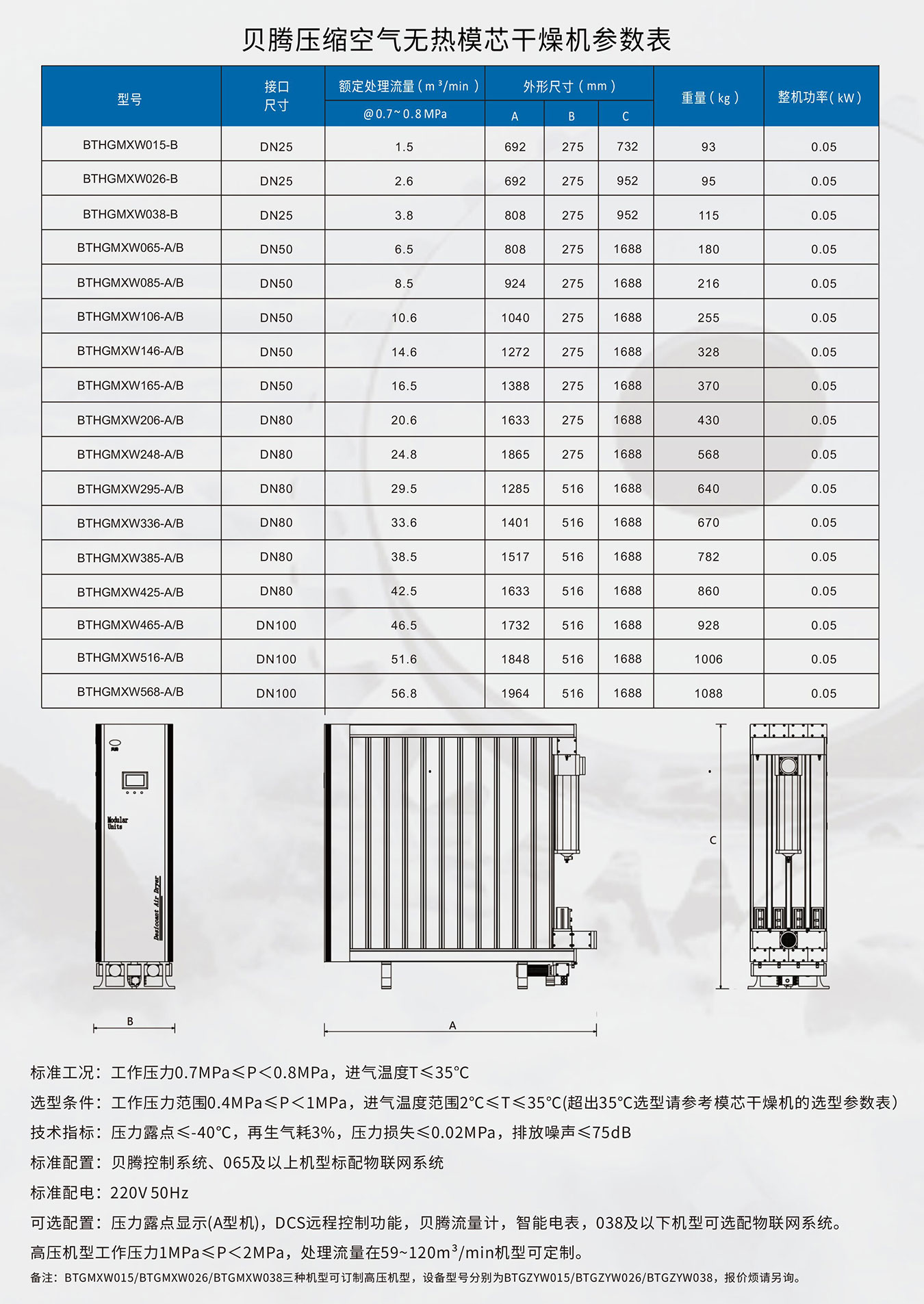 壓力露點(diǎn)≤ -40℃,再生能耗5%,壓力損失≤0.02MPa,排放噪聲≤75dB;